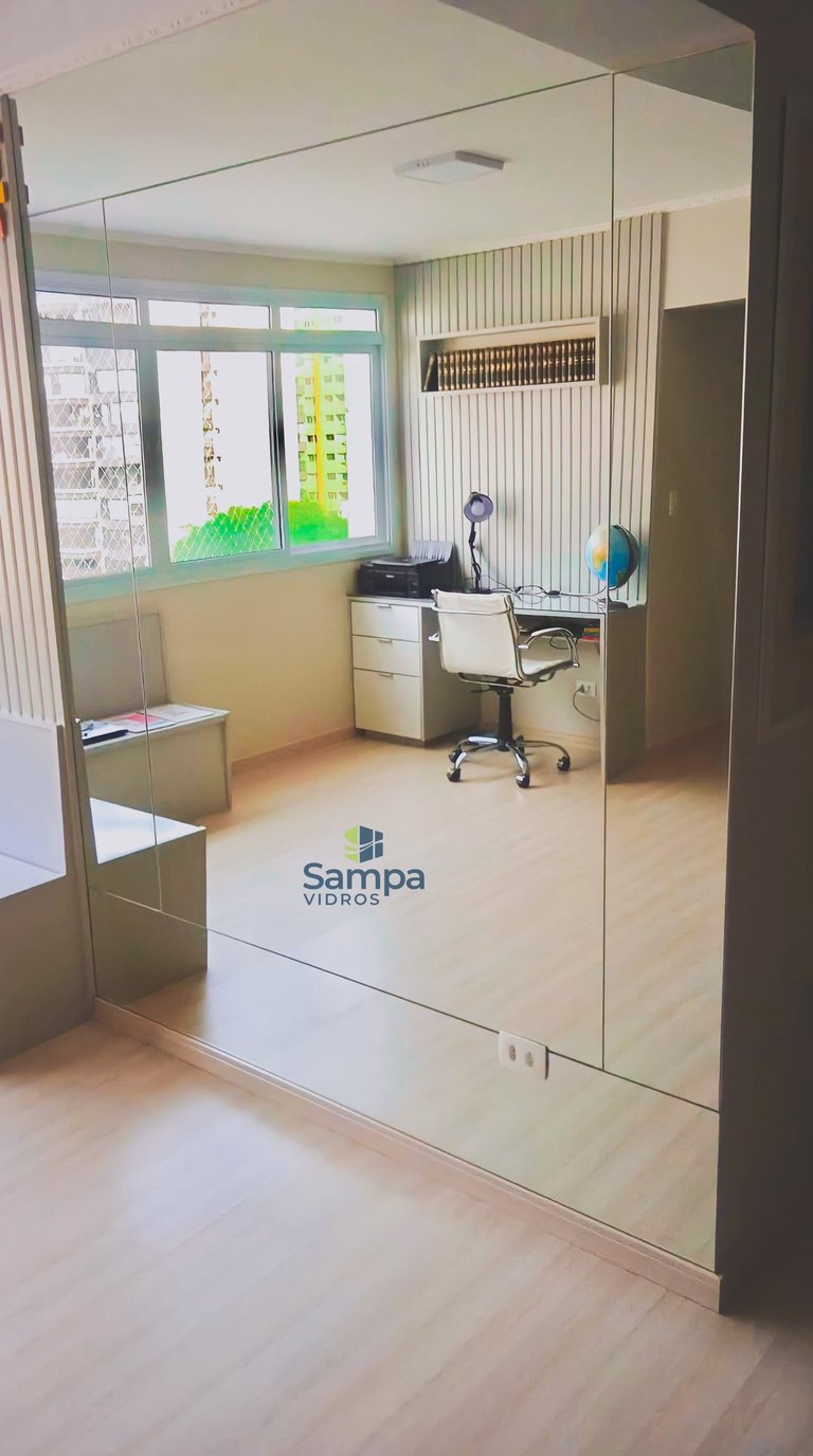 FECHAMENTO DE PAREDE COM ESPELHO PRATA